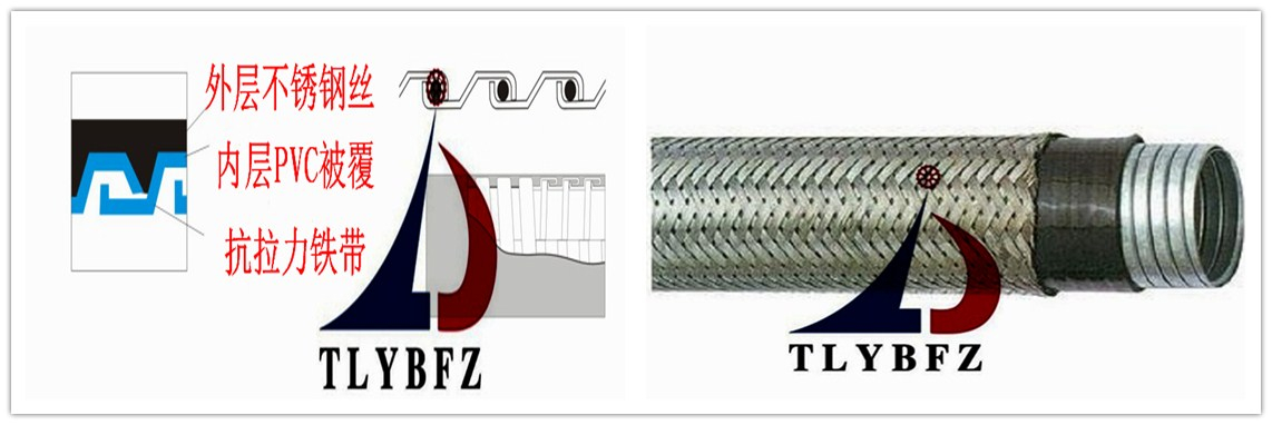 產(chǎn)品材質(zhì):(外層)采用不銹鋼編織網(wǎng),(中間層)采用PVC,(內(nèi)層)采用(不銹鋼201或304或316或鍍鋅鋼)。